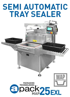 MAP25 is the basic model of this series. All models have basic features. Its design and technology are much improved. The stainless steel body is extremely robust and the machine's settings are not disturbed in displacements. The body is made of AISI304 stainless steel, the molds are made of 5000-7000 series aluminum, high resistance and long life casting sealing pool, suitable for industrial systems. Electrical, electronic and pneumatic materials of the world's most valuable brands are used.   If you require increased production capacity but lack the budget to upgrade to a fully automatic system, our Map25DS Double Station model is ideal. Incorporating two stations on a single body, the MAP25DS enhances production capacity without incurring high costs. Our DS model features all the capabilities of the MAP25, and it accommodates both plastic and laminated paper trays. Additionally, the unit supports using multi-layered printed/non-printed top film or laminated paper lids.