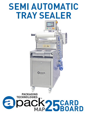 The standard MAP25 structure and mold dimensions have expanded to accommodate non-standard large packages. The unit's dimensions can be customized to suit your specific packaging requirements. Additionally, a free roller inlet and outlet conveyor can be integrated into the MAP25E model when needed while retaining all the features of the MAP25 unit. This unit features various engineering modifications explicitly designed for large and heavy packaging requirements while retaining the basic functionalities of the MAP25 series. The unit is particularly suitable for packaging products prone to spilling, emitting odors, containing oil, or polluting the packaging environment such as fish. To facilitate easy cleaning, the drawer pool is designed to be washable. The sealing pool is equipped with a lift to facilitate the processing of heavy packages. APACK has gained a great deal of experience over time, mainly in food packaging. Believing that food packaging machines should also have high health standards, we have paid a lot of attention to this issue in the design of our machines. Most of the MAP25 models are also suitable for medical packaging. The EXL model has elevator and slide die systems and is preferred for packaging sensitive medical material. Skin packaging methods on plastic tray or paper are new trends in the packaging industry. Although the techniques are similar, they differ based on the packaging material used. Despite their higher cost, these methods offer an effective shelf presentation and are particularly appealing to the new generation. These two methods have been increasingly employed in recent years to showcase the product's shape precisely on store shelves In the another type of the SKIN technology is uses flat, borderless laminated paper plates instead of plastic trays, named CARDBOARD.