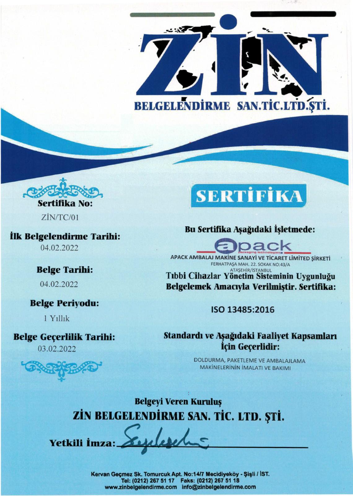 Bir süredir medikal sarf malzemesi ambalajı yapan makineler üretiyoruz. Belgesini de almanın zamanı diye düşündük.