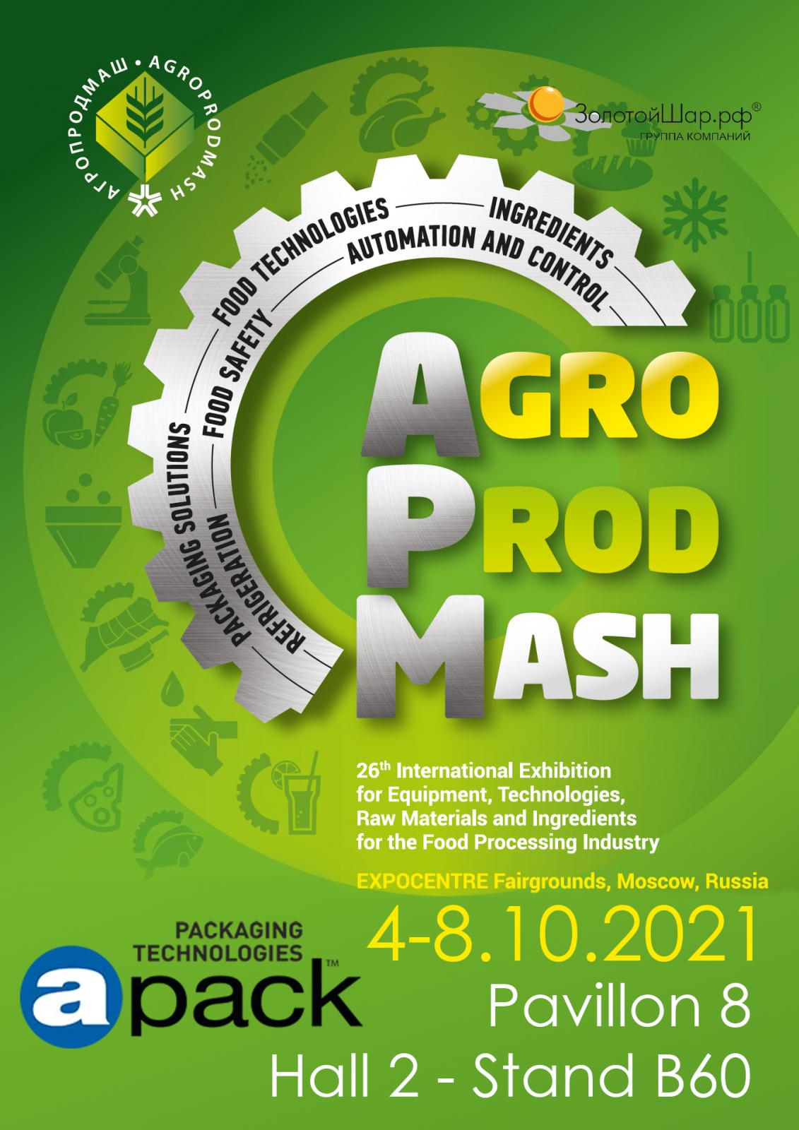 4-8 Ekim 2021 tarihlerinde Moskova'da düzenlenecek olan AgroProdMash Gıda ve Gıda Teknolojileri fuarına, Rusya temsilcimiz Goldshar ile birlikte katılacağız.